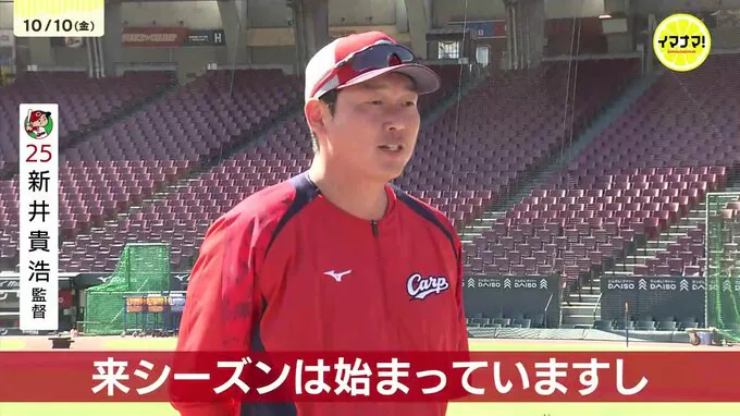 レギュラーシーズン終了から6日。来シーズンこそチームの中心としての活躍が期待される選手たちがマツダスタジアムで練習をスタートさせました。