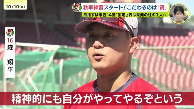 「量は継続して(やるのは)普通ですので…こなしていく。あとは質。バッティング練習の時はケースバッティングを意識しながらやりたい。バッティング練習は気持ちよく打ちがちですけど、いろんなボールを交えながらより実戦を意識してやっていく」