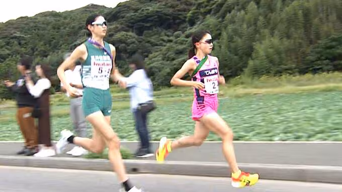 最長距離のエース区間の3区10.7km、トップの三井住友海上は兼友良夏(24)、2位の天満屋は女子マラソン日本記録保持者の前田穂南(29)が登場、スタート直後、2区でルーキーの穗岐山芽衣(19)が5人抜きで4位に順位をあげてきたシスメックス、3区の尾崎光(21)が天満屋の前田を抜いて2位に上がった。