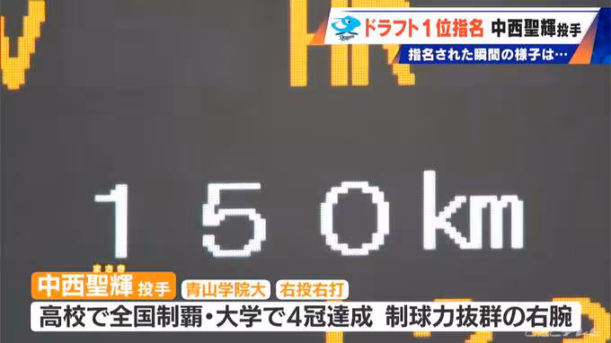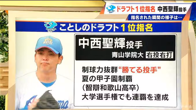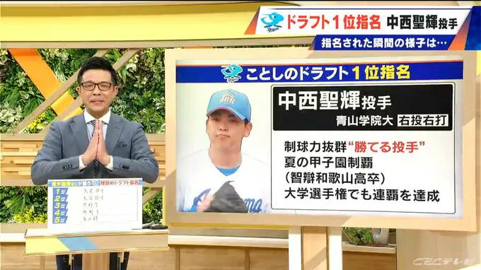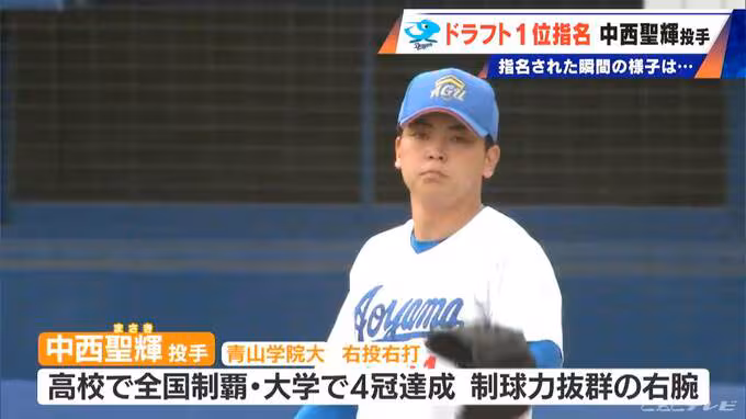プロ野球ドラフト会議で、中日ドラゴンズは中西聖輝投手(青山学院大学)を1位で指名しました。