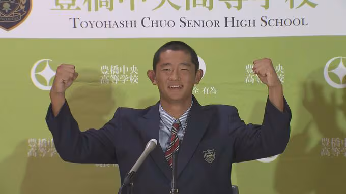 松井蓮太朗選手は愛知県豊橋市出身のキャッチャーで、強肩を活かした守備と鋭いスイングが持ち味。ことしの夏は、小学校4年生のころからバッテリーを組む髙橋大喜地投手とともに豊橋市の高校から74年ぶりの甲子園出場を果たしました。