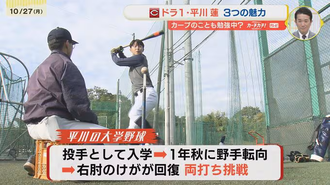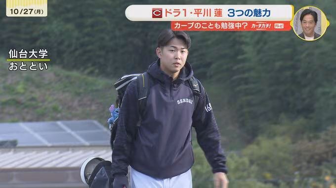 2025年、カープがドラフト1位で指名した仙台大学の平川蓮選手。