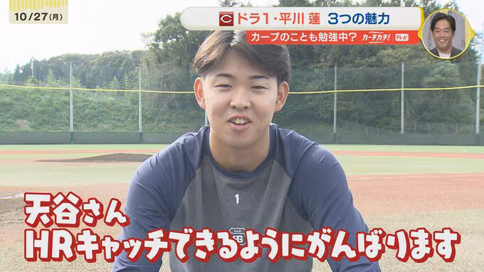 RCC野球解説者・天谷宗一郎さん以来のホームランキャッチも期待できる平川選手に、その映像を見てもらいました!