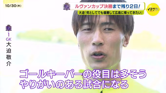 サンフレッチェ広島は3年ぶりのルヴァンカップ決勝まで残り2日となった30日。広島での最後の練習をしました。練習を終えた守護神・大迫敬介に意気込みを聞いてきました。