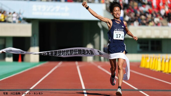 神野監督:10月頭の世田谷記録会10000mでは29分14秒17で、チーム内でも全然良くなかったんですが、10月中旬から一気に調子が上がってきました。最後は堀尾の力を信じてエース区間を任せました。4区の木付琳(26)は10月の記録会で5年ぶりに10000mの自己記録を更新して(28分21秒06)、3区を走ってもらうつもりでした。記録会後に少しケガもあって、まだ回復段階ということで3区は堀尾にお願いして、木付には4つある8.2km区間の中で一番重要な4区を任せました。状態は良くなかったと思いますが、あきらめない走りをしてくれました(区間10位)。5区の栗原直央(23)は学生時代まで1500mが専門で、駅伝とは無縁の世界にいた選手です。MABPマーヴェリック(M&Aベストパートナーズのチーム名)に入って夏合宿では距離走も頑張りましたし、苦手なクロスカントリーも必死な顔をして走って、夏が明けたら体つきが変わっていましたね。今日が初めての駅伝でしたが、役割を全うしてくれました。