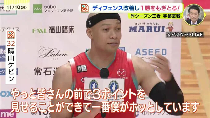 晴山ケビン「やっとみなさんの前で3ポイントを見せることができて一番僕がホッとしています。ドラフラー勝ちじゃけー、ありがとうございました」