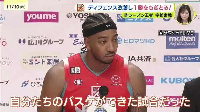 広島ドラゴンフライズは東地区2位で2敗しかしていない昨季の王者宇都宮をホームに迎え満員の観客を前に意地を見せ、1勝をもぎ取りました。