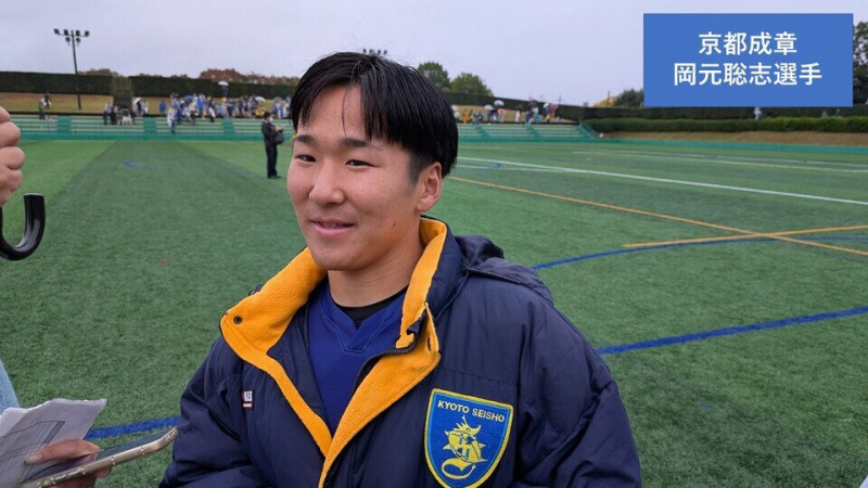 「今年負けたら終わりだと思っていた。1年間成章のディフェンスを取り戻そうと日々やってきた成果が出た。生徒たちが本当によくやってくれた。花園では60分間しっかりと戦い続けることができるチームをつくって日本一を狙いたい」と話した京都成章・関崎大輔監督。