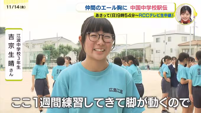 全国大会への切符をかけた中国中学校駅伝が16日に東広島運動公園で開催されます。注目校のうち14日は広島市を1位通過した江波中学校をご紹介します。