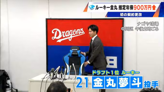 去年ドラフト1位で入団したドラゴンズの金丸夢斗投手(22)が、18日契約更改交渉を終え、900万アップの推定年俸2500万でサインしました。