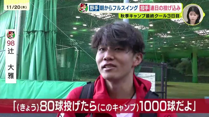 その言葉を受け再び投げ始めた辻󠄀。来シーズン、先発へ転向する21歳は最終的にこの秋1004球を投げ込みました。