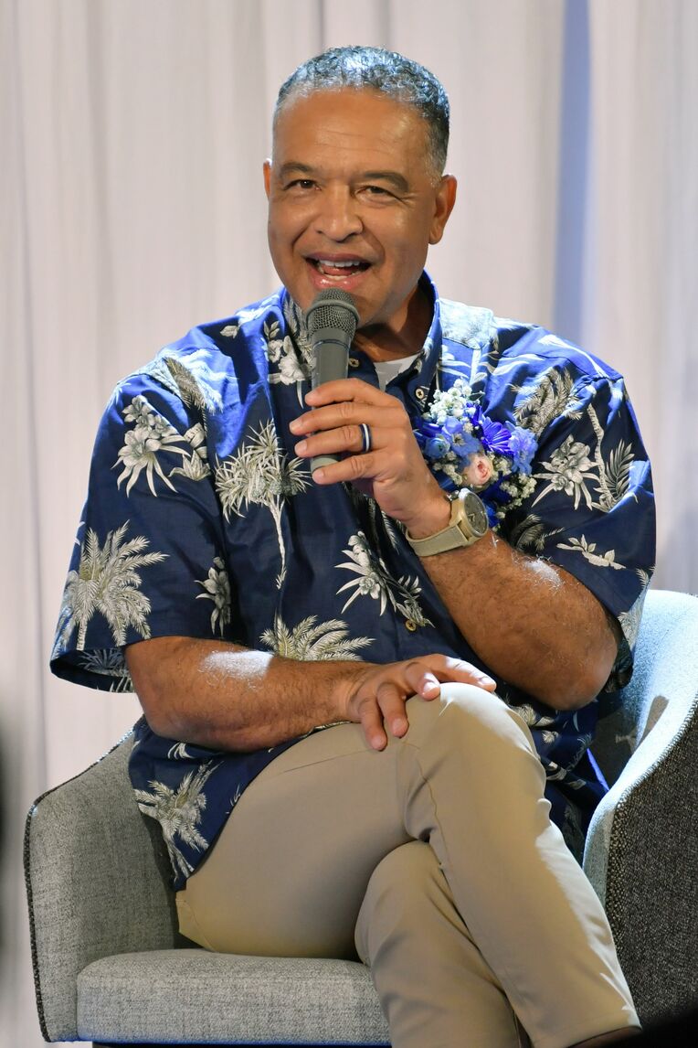 米大リーグのワールドシリーズ(WS)で2連覇を果たしたドジャース監督で、那覇市生まれのデーブ・ロバーツさん(53)の講演会が20日、市内であった。沖縄県内の経営者ら約150人を前にロバーツさんは「昨年WSを制し、今季は選手のモチベーションを維持するのが非常に難しいシーズンだった」と振り返った。