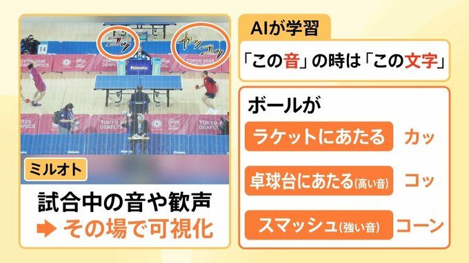 東京デフリンピックでは、試合の音や観客の歓声を、「ミルオト」というシステムを使って、その場で可視化しているということです。