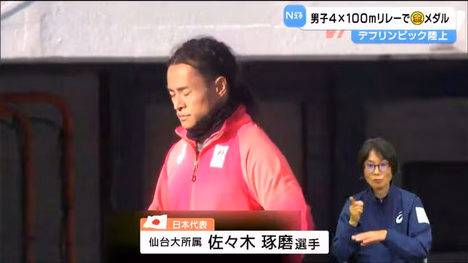 デフリンピック男子4×100mリレー決勝。日本は4レーン。