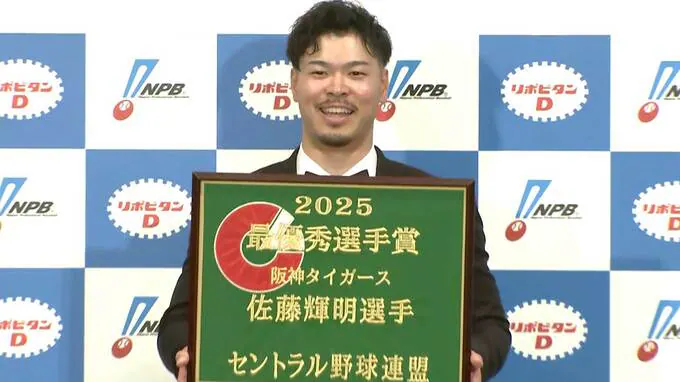 この式典で発表されたのは記者投票で選出される両リーグのMVP(最優秀選手)と新人王の2つの賞。セ・リーグMVPには阪神の佐藤、“本塁打・打点”の二冠王、さらに守備でもゴールデングラブ賞を獲得、日本シリーズでは5試合連続打点をマークし、2位の石井大智(28、阪神)に3倍の得票差をつけて文句なしの初受賞となった。