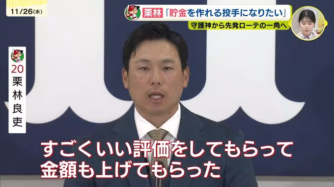 来季から先発に転向する栗林と右肘の手術をしてリハビリ中の大瀬良が契約更改に臨みました。