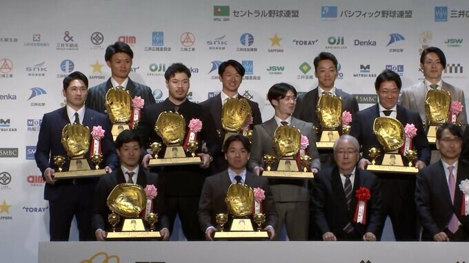 シーズンを通して各ポジションで最も守備力に卓越した選手を記者投票によって選出する守備の“ベストナイン”「第54回三井ゴールデン・グラブ賞」の表彰式が27日に、都内のホテルで行われ最多得票の阪神・大山悠輔(30)ら17人が登壇した。