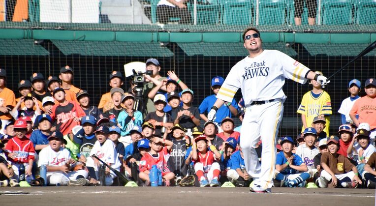 デモンストレーションでは、山川内野手が打撃を披露した。最初は飛距離が伸びなかったため、子どもたちが山川コールで後押し。打球が柵を越えると、おなじみの「どすこい」ポーズで一緒に喜んだ。(運動部・又吉宏宜)