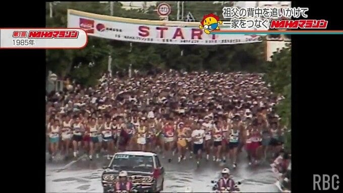 「さぁ、今スタートしました。5000人の第1回NAHAマラソンのランナーが一斉にスタートしました。元気に、そして健康に気を付けて42.195キロを走ってほしいと思います」