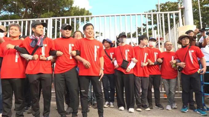 中間制限地点の摩文仁 行く手を阻む人間の鎖