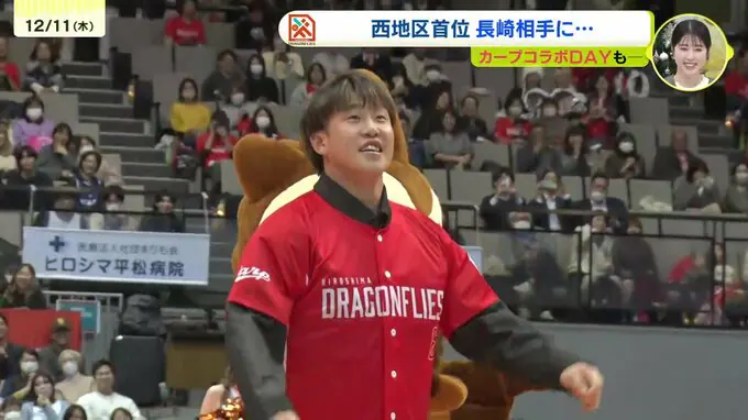 カープコラボデーとして開催された広島ドラゴンフライズの一戦。今シーズン、まだ2敗と絶好調の西地区首位、長崎をホームで迎えました。