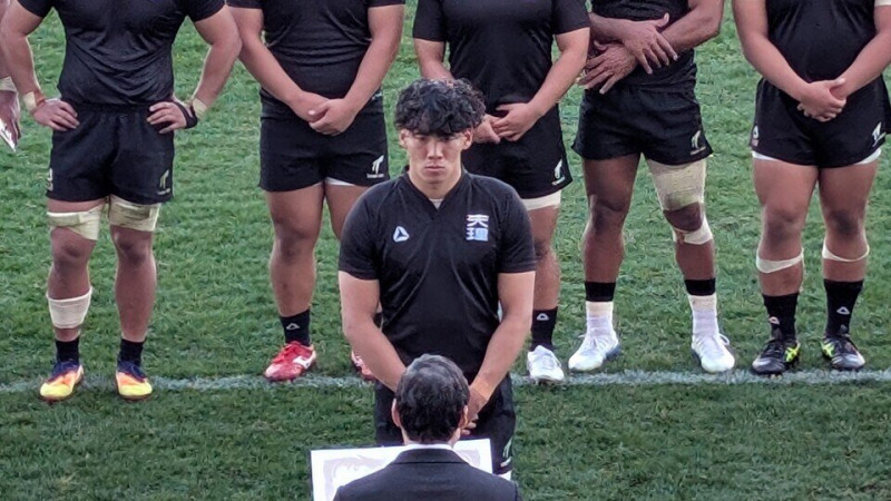 「今年はリーグ戦に参加させていただいただけで感謝の気持ちでいっぱいだった。選手たちが、最後までチャレンジャーとして、体を張ってくれたことが嬉しかった」と小松節夫監督が話すと、上ノ坊キャプテンが、「大学ラグビーは、関東の方が上と思われているが、関西のラグビーも負けてないぞというプライドもある。関西1位というプライドを持って関東相手にチャレンジしてきたい」と選手権への想いを口にした天理大学。