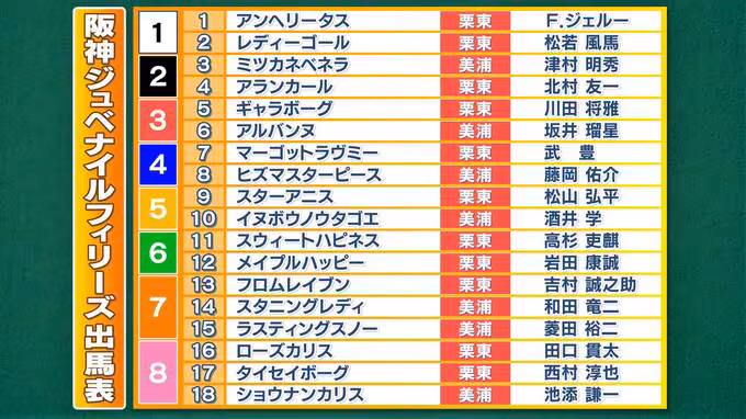 ■GI・阪神ジュベナイルフィリーズ(14日、阪神競馬場 芝1600m)