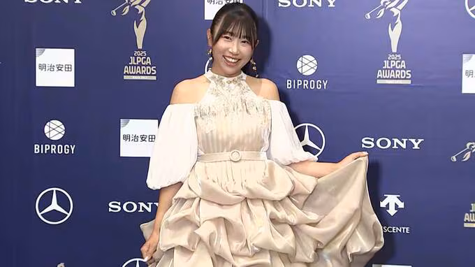 この日は普段のゴルフウェアではなく、様々な衣装で登場したプロたち、BEST PLAY2025を獲得、アイドルが大好きな菅沼菜々(25、あいおいニッセイ同和損害保険)はアイドル風のドレスで今季2勝をマークした神谷そら(22、郵船ロジスティクス)と写真撮影に臨み、神谷は「私、アイドルじゃない」と笑ったが報道陣から「きょうから転向」と言われると、「絶対にお断りします(笑)」と言い切っていた。