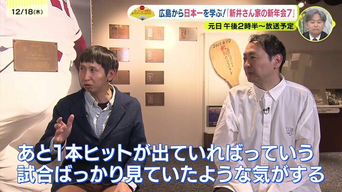 毎年恒例、新井監督とアンガールズの対談に加えて、今年は7人の選手たちが『広島の日本一』を学びに、行ってきました!その様子を少しだけ先行公開します!