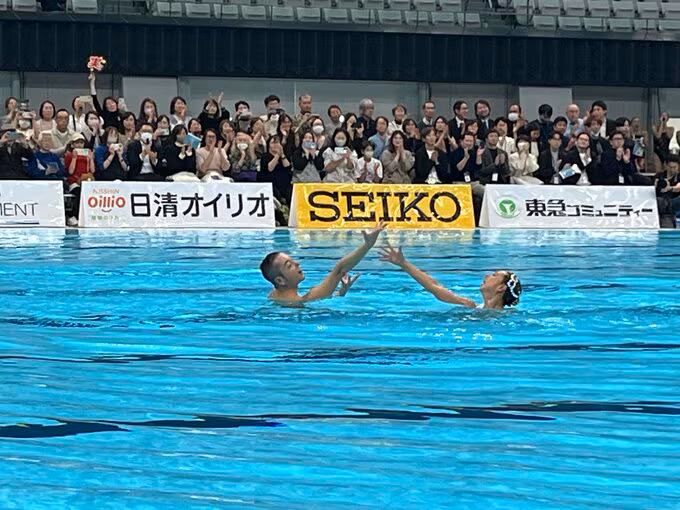 また、アーティスティックスイミングの魅力や迫力を感じてもらおうと、特別に観客席をプールサイドに設置。普段の競技では味わえない貴重な機会となった。