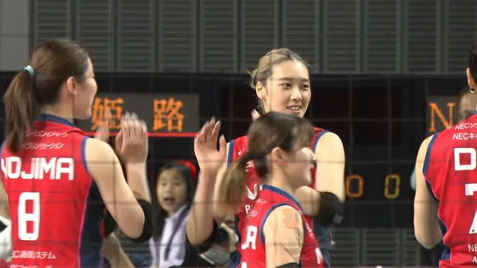つづく第2セットは姫路が中盤で5連続得点し、NECが8ー11と追いかける展開。それでも甲萌香(27)の速攻やジョバンナ・ミラナ・ デイ(27)のバックセンターなどで3連続得点し11-11とすぐに追いついた。その後は競り合いながらもNECシルビア・ヌワカロール(26)の強打など25ー19で奪い2セットを連取。
