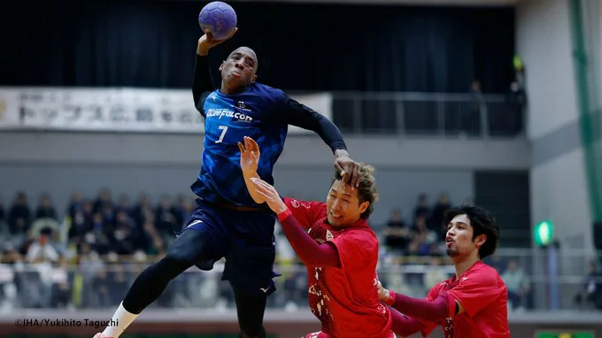 キューバ出身、197cmの長身を誇るヨアン・バラスケス(29、豊田合成)が先制点を奪い、その後4連続得点で一気に流れを引き寄せると、アジア大会代表最有力のゴールキーパー中村匠(29、豊田合成)がこの試合16本のシュートを止める異次元の活躍で相手の攻撃をシャットアウト。ジークスターは宮本辰弥(27)の素早い速攻や、伊禮雅太(いれい うた、24)の技アリのスカイプレーなどで奮闘するも、反撃には至らなかった。
