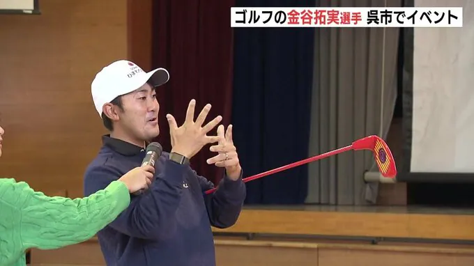 子どもたちにゴルフの楽しさを伝えようと、プロゴルファーの金谷拓実選手が呉市の母校でイベントを行いました。