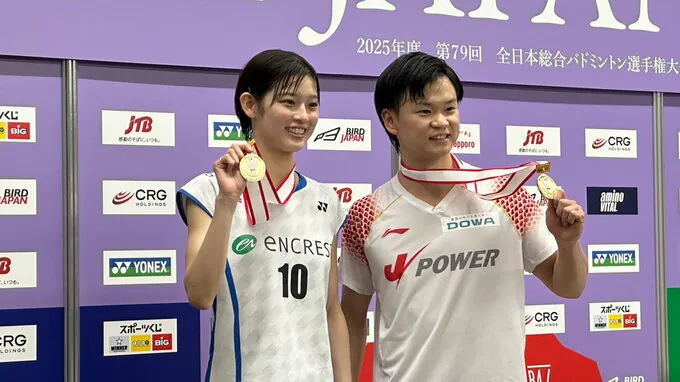 混合ダブルス決勝では東京、パリ五輪2大会で五十嵐とのペアで銅メダルを獲得している渡辺勇大(28、JーPOWER)が登場。田口真彩(20、ACT SAIKYO)との新ペアで初の頂点に立った。志田の元相方の松山は緑川大輝(25、NTT東日本)との混合ダブルスは初の決勝に進み、準優勝だった。