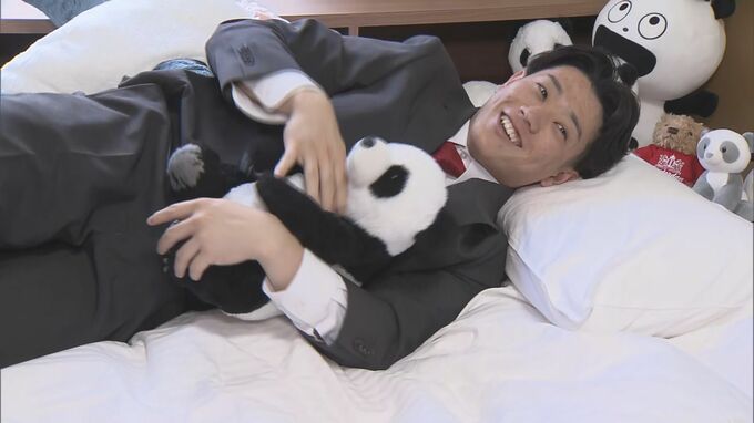 「パンダがずっと好きで、気が付いたらこんなに増えていました。自分でかわいいなと思ったら買って、ずっと寝るときはサメのぬいぐるみを抱いて寝るか、あとは気分で今日はこのパンダとこの子みたいな。パンダが好きなんで、パンダ掲げてもらったら手を振りますので、宜しくお願いします」と、意外な“パンダ愛”で周囲を和ませました。