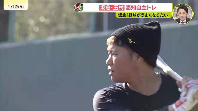 また、3年連続で「チーム坂倉」で自主トレをする玉村昇悟投手は、今年初めてだという傾斜を使った投球を披露。
