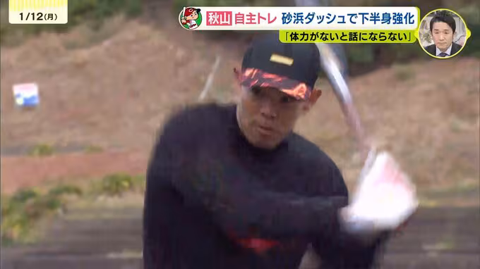 今年で9回目となる静岡県下田市での自主トレを行う秋山翔吾選手。