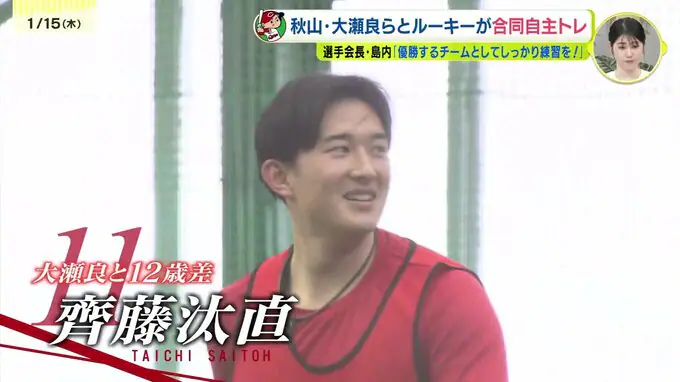 その大瀬良とは12歳差のドラフト2位ルーキーが齊藤汰直。先輩たちと一緒に汗を流しながら緊張感もあったそうですが刺激を受けていました。