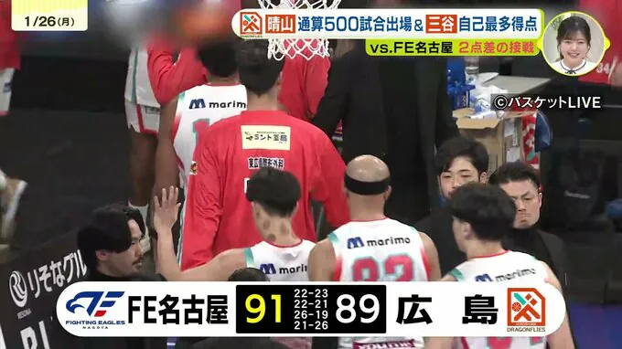 広島ドラゴンフライズは、メイヨ・ニック選手と渡部琉選手が新たに負傷欠場という苦境の中、アウェイで同じ西地区のファイティングイーグルス名古屋と対戦しました。