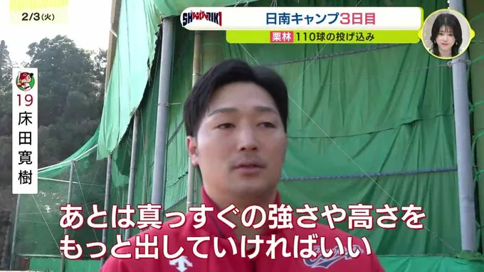 先発の柱、床田も、二回目のブルペン入り。ナックルカーブが良かったと、本人も納得の表情。71球を投げ込みました。ナックルカーブを多めに投げたそうです。