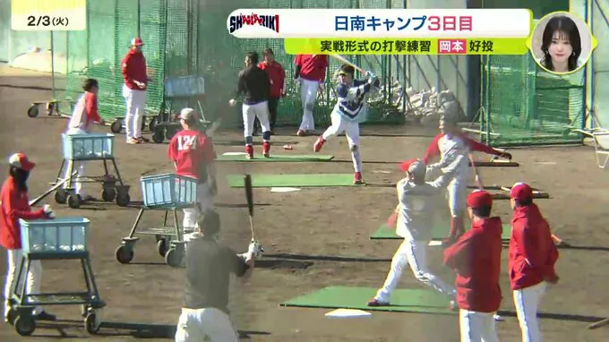 オフに肉体改造に取り組んだ佐々木が角度のある打球で快音を残せば、スイッチヒッターのドラフト1ルーキーの平川は左右両打席に立ち、長打こそありませんでしたがバッティングの感触を確かめました。