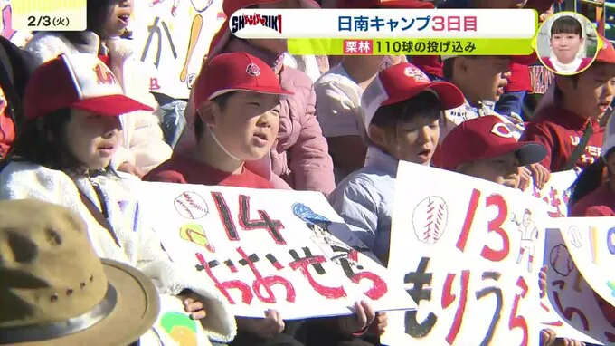 子どもたちの声援を受けてきょうも汗を流す選手たち。日南キャンプは3日目を迎えました。