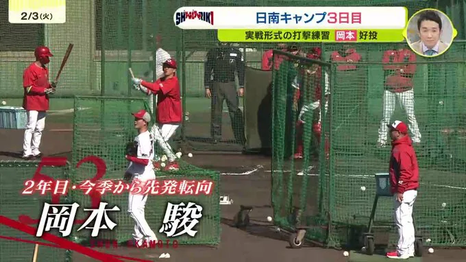一方、投手では、今季から先発転向の岡本が昨年首位打者の小園のバットをへし折るシーンも。