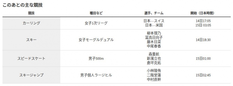 フリースタイル女子デュアルモーグルに、モーグルで4位の冨高日向子(多摩大ク)らが出場する。競技は14日午前10時30分(日本時間14日午後6時30分)から始まり、決勝は14日午前11時48分(日本時間14日午後7時48分)。