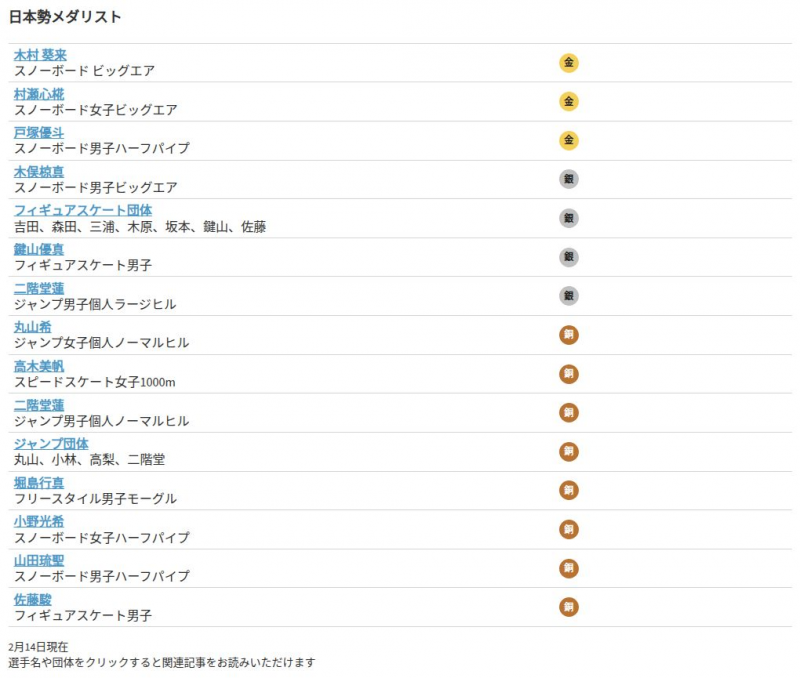 ミラノ・コルティナ冬季オリンピック(五輪)で15日(現地時間)に行われる競技の結果をお届けします。