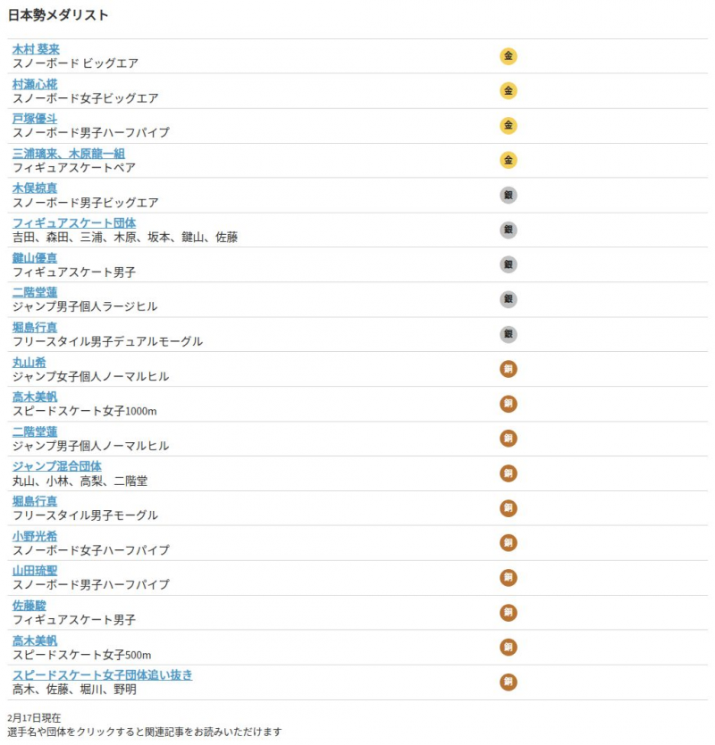 ミラノ・コルティナ冬季オリンピック(五輪)で18日(現地時間)に行われる競技の結果をお届けします。