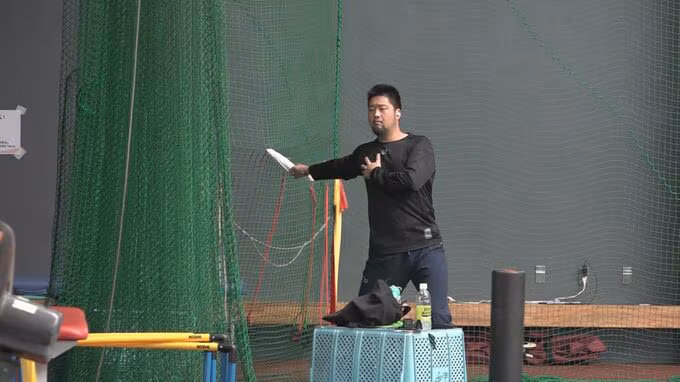 午前10時半、コザしんきんスタジアムに隣接する屋内練習場にバットを手にやってきた西川。マシンを相手におよそ30分間打撃練習に打ち込みました。