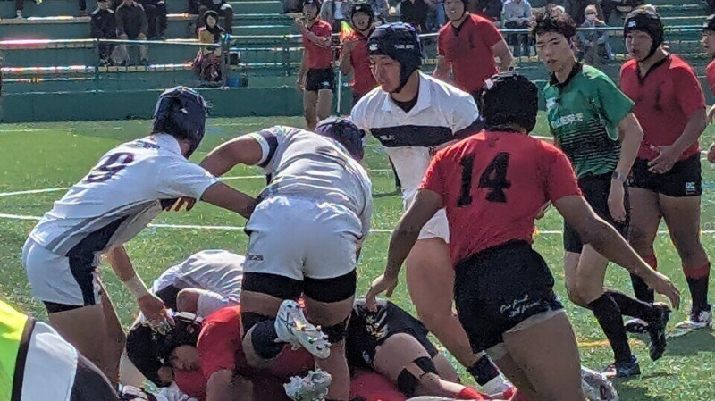 再び一人一人がしっかりと前に出て、圧力をかけて京都工学院を押し込んでいくと、逆風の中でも距離の出せる吉川選手のキックで敵陣深くまで攻め込んでいきます。そして前半の25分、トライラインまで15m付近まで攻め込むと、ラインアウトからのモールを右に左にしっかりとコントロールしてFL・大畑晴琉選手がトライ。ゴールも決めて12対8と前半のうちに再逆転しました。