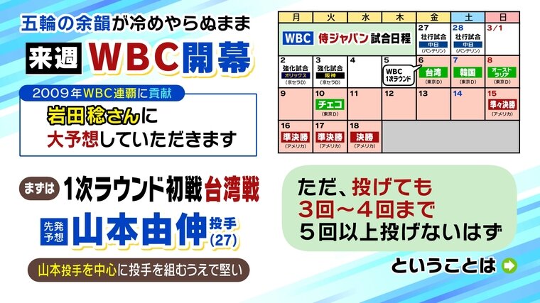 ―――3月6日(金)の第1ラウンド初戦は台湾戦。岩田さんの先発予想は山本由伸投手です。