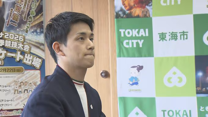 フィギュアスケート・ペア「りくりゅう」の木原龍一選手は3月2日午後、東海市役所に到着。